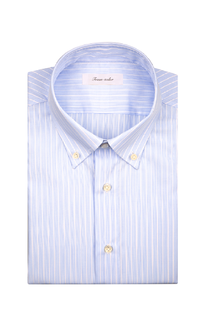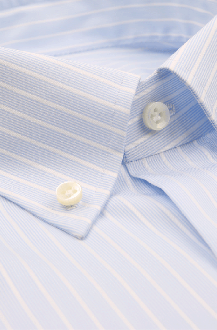 細節(jié):這款藍色中條紋襯衫顏色淺淡,藍白相間總能人感覺清新自然,居高的手工含量彰顯了襯衫的不凡品質。領間的釘扣設計把領子固定的相當硬挺而有型,在休閑中多添了一絲嚴謹,在嚴肅中又注入了運動風,可正式可休閑,文藝又儒雅!