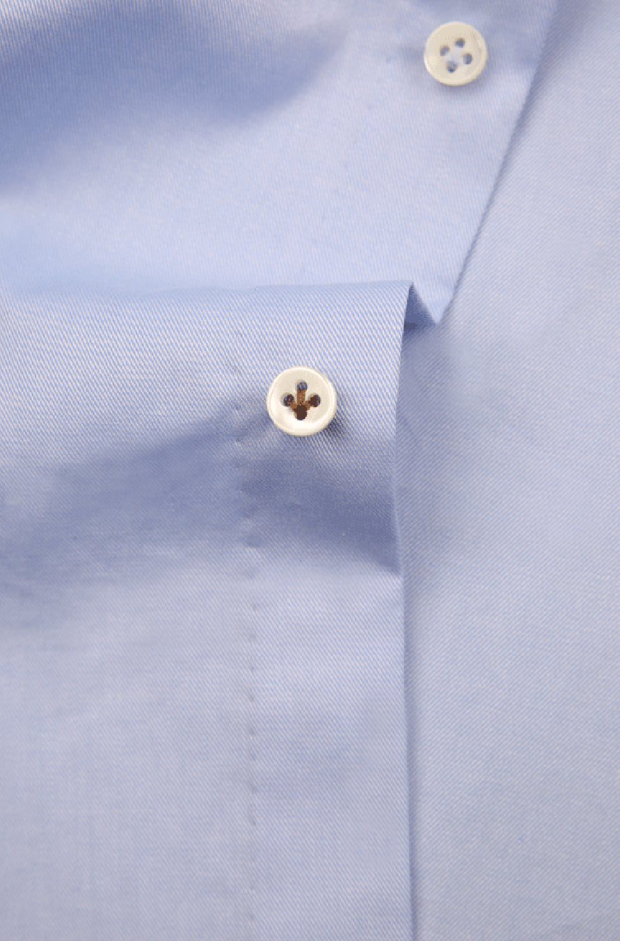 細(xì)節(jié):藍(lán)色手工襯衫是商務(wù)男士的必備,它是唯一一個能代替白色襯衫作為西裝的商務(wù)伴侶,無論在正式度、優(yōu)雅與百搭性上都不輸白色,卻比白色更加柔和,更能凸顯男士們的溫柔與親和力。搭配優(yōu)雅的溫莎領(lǐng),兼具商務(wù)氣息與時尚感!