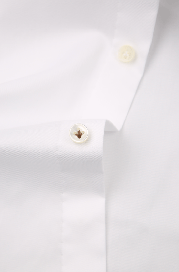 細(xì)節(jié):在商務(wù)社交場(chǎng)合,主流越接近白色,風(fēng)險(xiǎn)就越小,沒有什么場(chǎng)合是一件白襯衫壓不住的。本款萬能白襯衫簡(jiǎn)約有型,修身且百搭,它可以平衡深色西裝帶來的一切拘束感,穩(wěn)重中透著開朗與自信,搭配溫莎領(lǐng),優(yōu)雅氣息更濃,是商務(wù)男士的標(biāo)配!