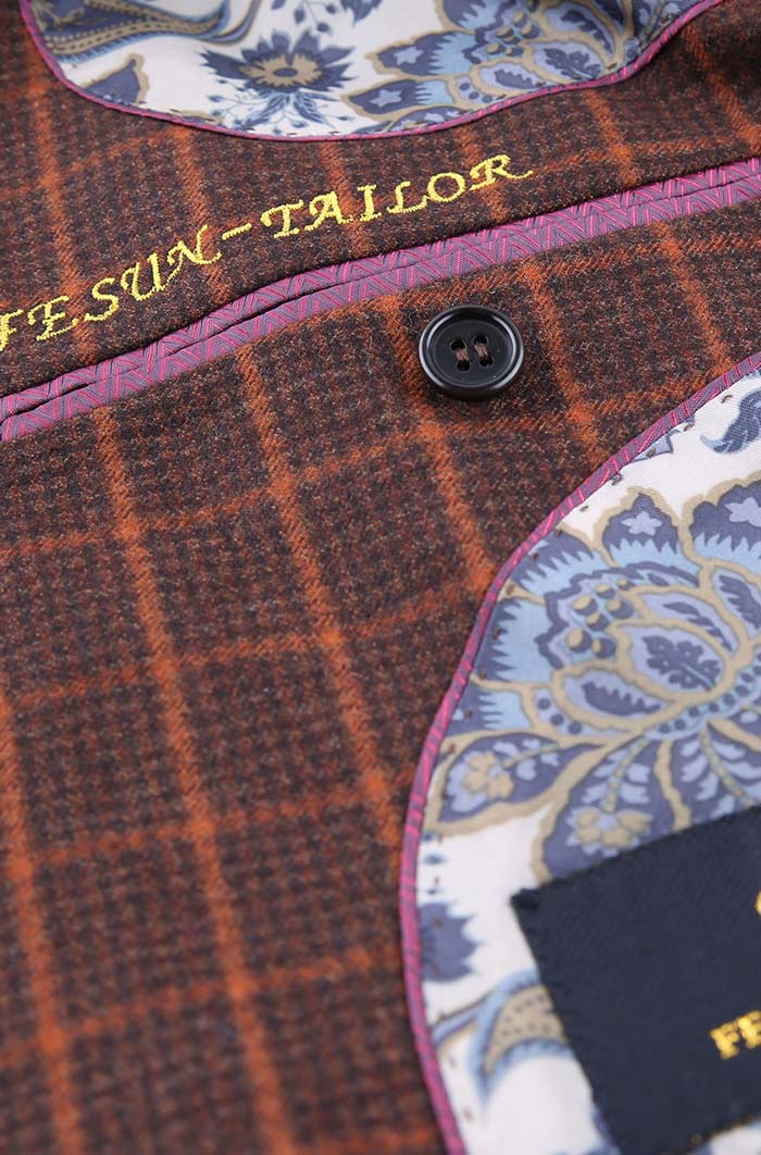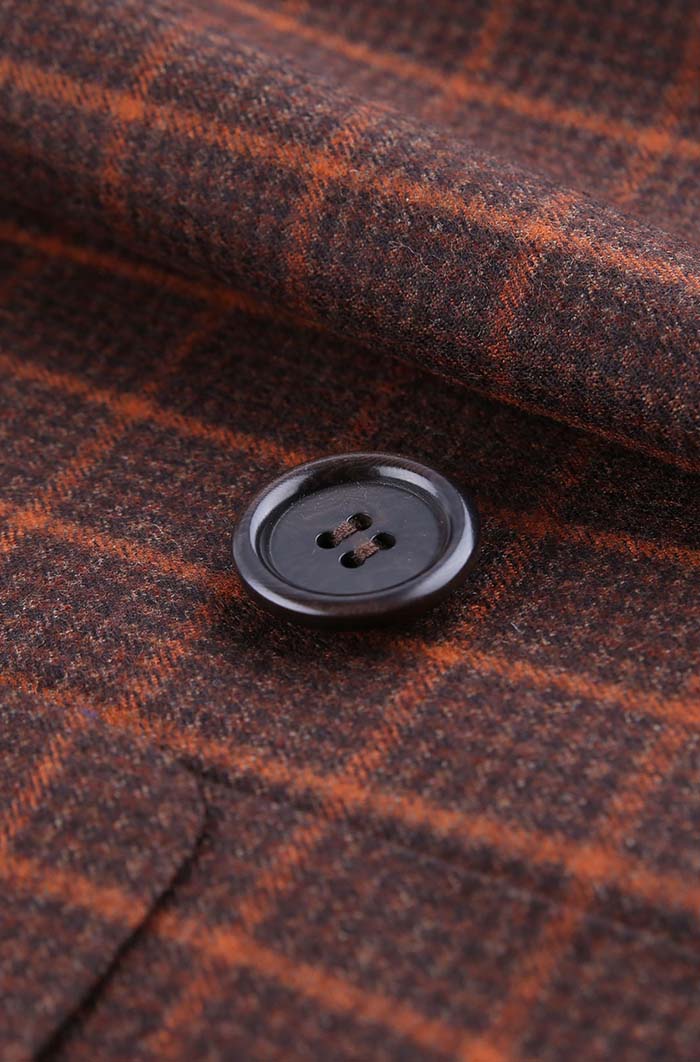 細節:這款咖色翻領大衣可為你打造復古紳士造型,裁剪修身精良,線條流暢簡潔,另有手工米蘭眼、防輻射襯里手機袋、筆兜、名片兜...等個性化配置,穿著便利、氣場自來!