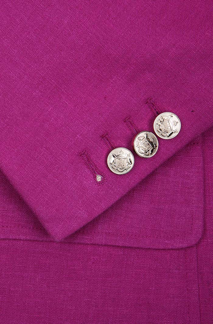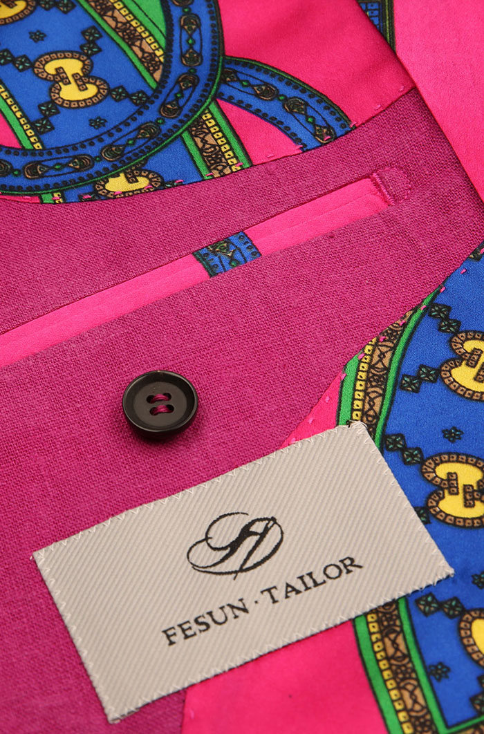 細節:我們試圖通過這樣的玫紅色亞麻西裝去探索男人的另一種溫柔,給繁雜的生活帶來一味調劑。春夏季節,穿上這款亞麻材質的玫紅色西裝,讓它強大的透氣、散熱性能沁入身體的每一個角落,舒適又清爽。