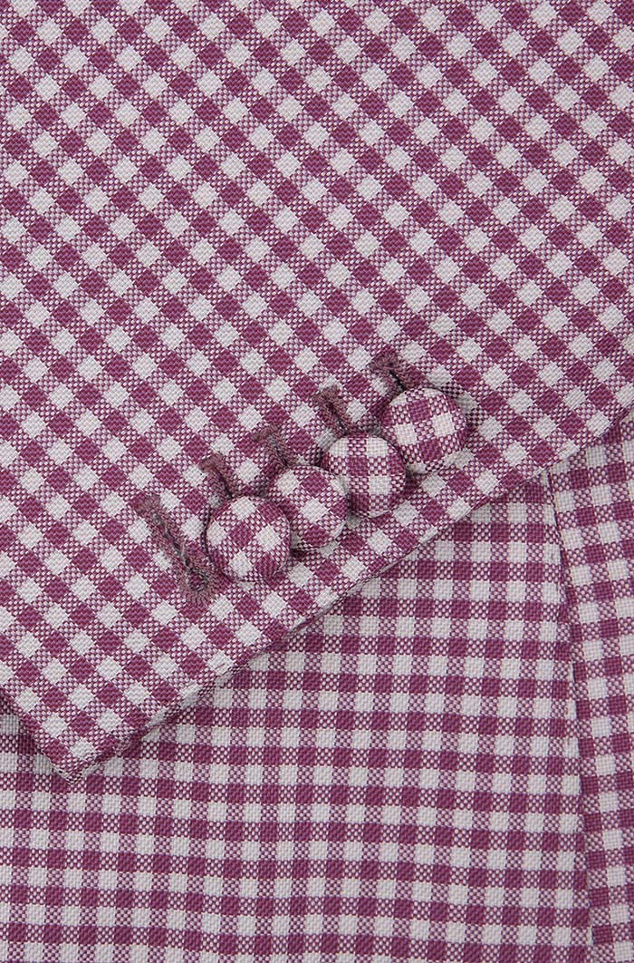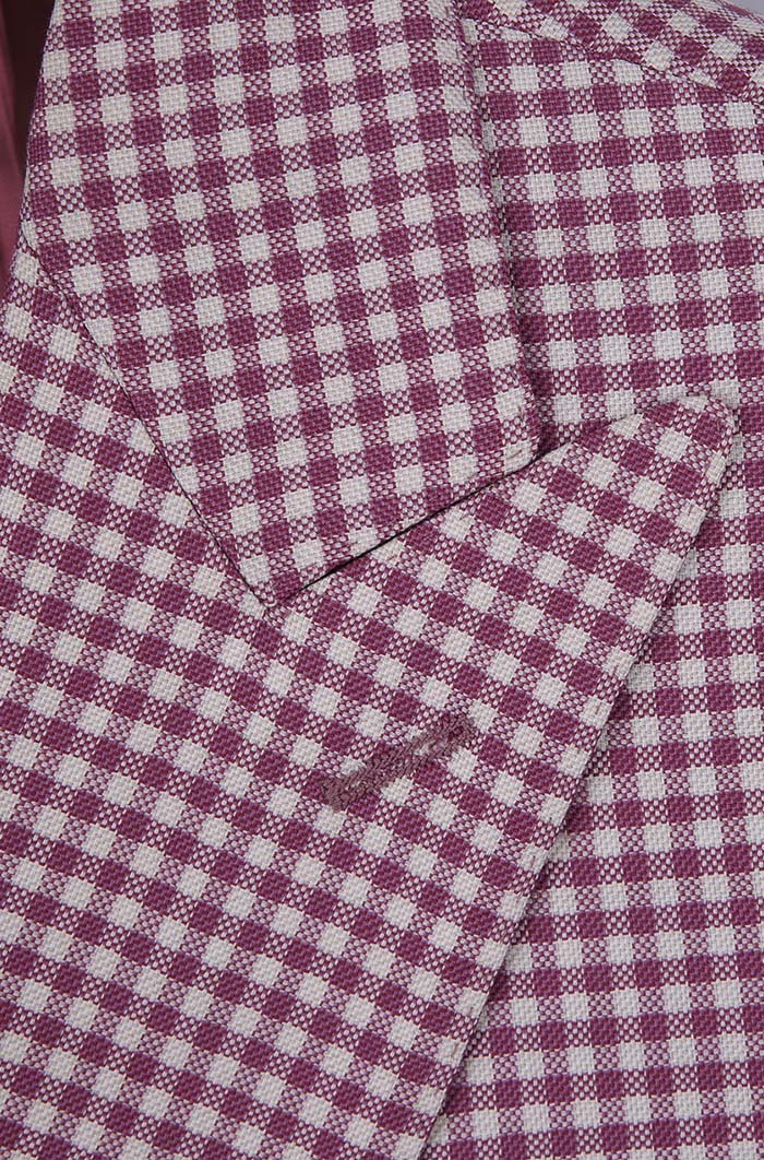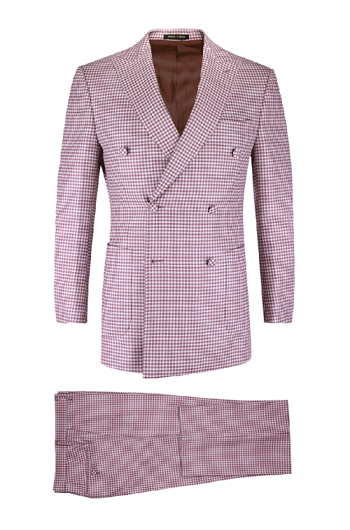 細節:本款粉格套裝為經典雙排扣戧駁領設計,低飽和度的莫蘭迪粉色系總給人一種高級、清透的感覺,自在又愜意。無論你是皮膚黝黑的型男還是膚白安靜的文藝男,都可以在它身上感受到時裝的樂趣。
